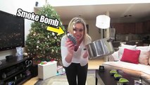 Christmas morning, I tricked Jesse into thinking the Christmas tree was quickly smoking up. I hid a smoke bomb under the tree behind all the presents, while he