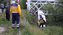 Kaza yerinden detay- Yaralılara müdahaleden detay- Arabanın asılı durması Bursa'nın merkez Osmangazi ilçesinde bir taksi, çarptığı köprülü kavşağın korkuluklarında asılı kaldı.Haber