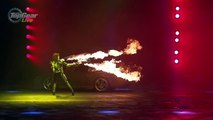 Stunning slow motion footage of the Inferno Stunt from Top Gear Live 2014 in Glasgows SSE Hydro. Naomi Lynch stands up to the heat and torches the Porsche .
