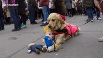 The filmer wrote online that the dog, his friend's, "seemed to get agitated whenever she saw the picture of Donald Trump".
