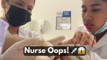 Nurses face a dramatic blood flow after removing the needle before the tourniquet