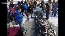 The winter harvest for Chinese fisherman is astonishing