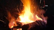 Görüntü Dökümü: Ateş başında demir işlenmesinden görüntüler, Demirci ustası Yılmaz Cıncıkla ile röportaj, 45 yıldır demir işliyor Gaziantep'te 13 yaşında babasıyla demircilik yapmaya başlayan Yılmaz Cıncık, 45 yıllık mesleğini ilk günkü özveriyle devam ettiriyor.Haber