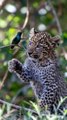 A Leopard Cub playing with a Hummingbird