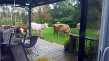 Heard of cows invade neighbourhood back garden