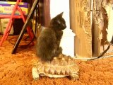 Chaton qui se déplace sur une tortue