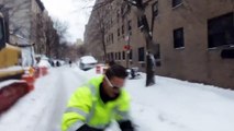 Después de las intensas nevadas que han azotado New York, un par de esquiadores aprovecharon para dar una "exhibición" de Snowboarding por las calles de la "Gran Manzana" para mostrar sus habilidades sobre sus "tablas"