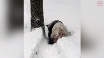 RAW VIDEO -- Giant panda Tian Tian enjoys the snow at the National Zoo Smithsonian Zoo Massive Snow Storms Zilla blizzard 2016 Hits Maryland Baltimore ...