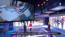 Une grève dans l'Education nationale était surtout suivie par les professeurs du collège mardi 26 janvier, jour de mobilisation de la fonction publique: pour eux, les revendications salariales se doublent d'un mécontentement contre la réforme du collège, qui entre en vigueur à la rentrée. Durée: 01:27