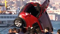 Tarabya'da Otomobil Denize Düştü: 1 Yaralı - Otomobilin Denizden Çıkartılması