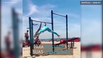 Gina Marie mostra as habilidades na praia