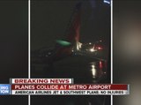 An American Airlines plane collided with a Southwest plane at Detroit Metropolitan Airport, while taxiing on the runway.