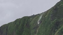 The amazed filmer explained the "surrealist and rare" phenomenon happed as "following the latest rainfalls on the plateau the rain water has created a waterfall at over 600 meters high".
