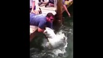Guy Gets Pushed Into Water While Trying To Stop Swinging Rope