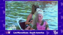 Elle prend un poisson en pleine tête
