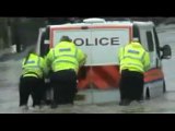 Furgone della polizia arrestato dall'alluvione
