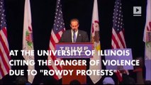 A huge rally on a college campus for Presidential candidate Donald Trump turned verbally and physically violent before the Republican arrived. It then got cancelled, Veuer and Kevan Kenney (@KevanKenney) has the pictures and Trumps reaction.