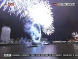 les 8 dernières secondes de l'année 2007 et les premières de 2008; Feu d'artifice sur la Tamise en face du London Eye