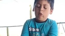Boy is engulfed in disgust while taking off grandad's socks