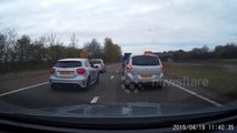 Road Rage on the M1 Motorway UK. Idiot car driver causes accident.\r