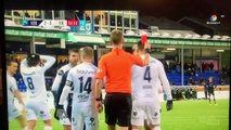 Une scène surréaliste ! En Norvège, le milieu de terrain du FK Haugesund Haris Hajradinovic a été expulsé pour avoir poussé son propre gardien de but, Per Kristian Bratveit ! Hajradinovic venait de concéder un penalty pour une faute sur un joueur du Stromsgodset IF – pourtant, la faute semble avoir été commise en dehors de la surface de réparation… – quand il s'est fait rabrouer par Bratveit. Les deux coéquipiers se sont alors bousculés, avant que le premier nommé ne rejette plus violemment le second, de la main. L'arbitre du match a immédiatement consulté l'un de ses assistants puis a donc exclu Hajradinovic. Pour la petite histoire, Bratveit a arrêté le fameux penalty, mais Haugesund a quand même perdu 2-0.