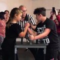 Une jeune fille bat un garçon au bras de fer