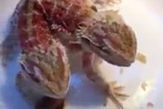 Dans une assiette, des lézards siamois mangent des insectes. Flippant. Retrouvez toute la sélection de vidéos Mensquare : http://www.mensquare.com/videos www.mensquare.com