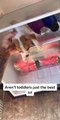 Toddler puts puppy in the fridge to chill out