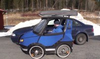 En Suède, l'inventeur Mikael Kjellman nous présente sa PodRide, une petite voiture à pédales à assistance électrique capable de rouler aussi bien sur les pistes cyclables que sur les routes ou les chemins de campagne. Ayant un poids de 70 kg et mesurant 75 cm de large pour 1,80 m de long et 1,45 m de hauteur, ce véhicule écologique est capable d'atteindre la vitesse de 25 km/h. La PodRide est équipée d'un confortable siège installé à la même hauteur que dans une voiture classique ainsi que d'un petit moteur de 250W alimenté par une batterie au lithium, d'une protection contre les intempéries, d'un essuie-glace manuel, de feux de circulation et de suspensions lui offrant une bonne stabilité. Elle dispose même d'un coffre et d'un attelage pour tirer une petite remorque. Ce véhicule breveté német aucune particule de CO2 en roulant, mais il en produit indirectement lors de la charge de la batterie, en fonction de la provenance de lélectricité.