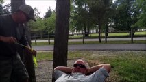 Gamelle sur gamelle pour ce gamin qui renverse son liquide pour faire de bulles. Et papa est mort de rire