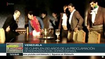 En la Plaza Simón Bolívar de Caracas el presidente de Venezuela, Nicolás Maduro, recibió a miles de ciudadanos que marcharon este martes en apoyo a la Revolución Bolivariana y también, por los 206 años de la independencia. teleSUR.