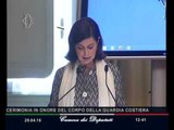 La Presidente Boldrini ha poi consegnato una targa con l'iscrizione: "Al Corpo della Guardia Costiera, per lo spirito d'abnegazione e l'impegno incessante nel salvare vite umane".