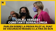 Colau, Vergés i Serrallonga parlen de la prova pilot al punt de vacunació massiu de la Fira de BCN