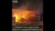 Bolu'da samanlıktan başlayarak bitişikte bulunan diğer binalara sıçrayan yangında ev, ahır, samanlık ve odunluk yanarken 4 büyükbaş hayvan da telef oldu.Haberhttp://haberler.com/bolu-yangindan-kurtardiklari-hayvanlari-yolun-8386452-haberi/
