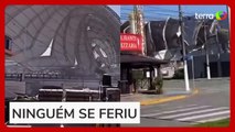 Rajadas de vento derrubam arena de eventos no litoral de SP