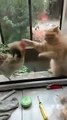 The filmer later wrote online: "We had a piece of pizza left over so I decided to give our girls a treat.