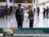 La presidenta de Brasil, Dilma Rousseff, aseguró este viernes que las decisiones adoptadas por el Gobierno provisional de Michel Temer representan un retroceso de los logros alcanzados durante los últimos 14 años de gestión del Partido de los Trabajadores (PT). La mandataria participó este viernes en un encuentro con blogueros en la ciudad de Belo Horizonte, en Minas Gerais, donde fue recibida por más de 30 mil brasileños. Criticó que no haya representación de la población afrodescediente ni femenina en el gabinete del Gobierno interino de Temer, lo cual "es la cara más triste de este Gobierno, lo que muestra su realidad". teleSUR