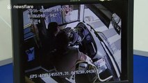 Shocking footage, from China, of a woman seizing the steering wheel on a bus to force the driver to let her off.
