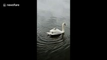 An adorable video has emerged of a mother swan giving a piggy back to her babies.