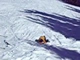 Un skieur arrive bien trop vite sur la bosse et se prend la gamelle de sa vie