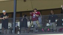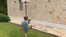 This dad was determined to make a behind the back trick shot from three point range and tried many times before even getting close to the basket. With the encouragement from his son to never give up he was able to make it to the 93rd time and the basketball finally went in.
