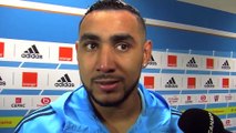 Dimitri Payet en zone mixte après la victoire de l'OM face à Guingamp