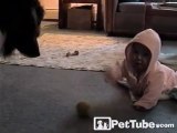 Dog Teaches Baby to Play Ball