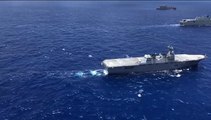 Cargo ships sailing at Gawadar Port under protection of Navy ships