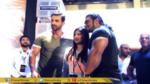 After Jacquele Fernandez lifting up John Abraham at an event, John too lifts up a female fan on his biceps. Watch now.