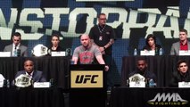 At the UFC Unstoppable press conference, UFC heavyweight champion Fabricio Werdum and Stipe Miocic, UFC light heavyweight champion Daniel Cormier