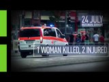 On July 18 a 17-year-old Afghan attacked passengers of a train with an axe, injuring 4 of them On Friday an 18-year-old Iranian–German shooted in the crowd at a shopping center near Munich killing 9 people On Sunday evening , a 21-year-old Syrian wielding a machete killed a woman and injured two others in Reutlingen In the past few hours, a 27-years-old Syrian committed a suicide bombing near a music festival in Ansbach, killing himself and injuring 12 people