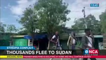 Heavy fighting and poor harvests have left hundreds of thousands of people in South Sudan without food. Many have headed north in the hope of getting into Sudan. Now they are stranded at the border with nothing to eat. For more go to http://www.dw.com/en/top-stories/s-9097