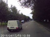 Le 1er août 2016 à Öskemen au Kazakhstan, un motard un peu trop pressé va couper dangereusement la priorité à une camionnette, et va le payer cash.