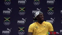 En conférence de presse, le sprinteur jamaïcain a fait le show en dansant la samba sur le podium au milieu d'une troupe de danseuses, pour compenser son absence de la cérémonie d'ouverture. Ses Jeux sont lancées !